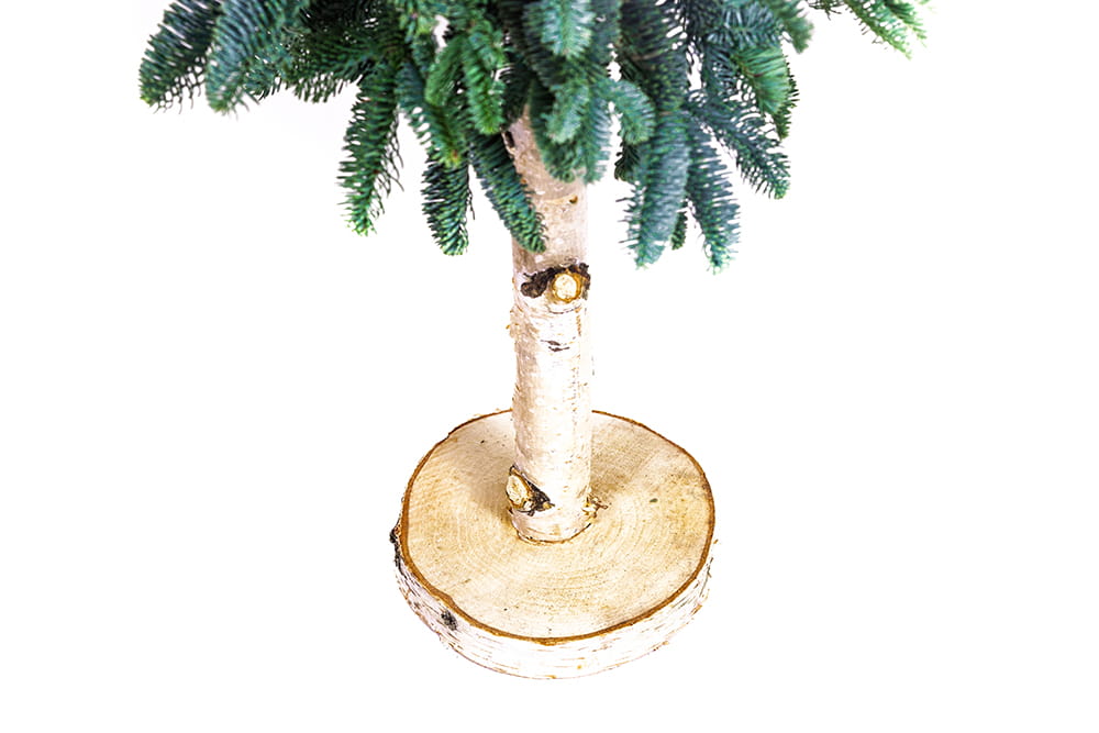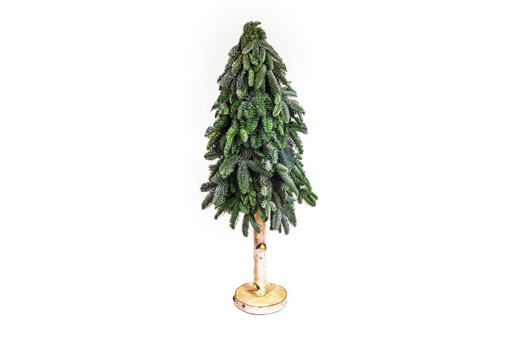 Naturalna, piękna choinka na pniu to urokliwa alternatywa dla tradycyjnych drzewek, idealna do mniejszych przestrzeni. Ręcznie wykonana z najwyższej jakości żywych gałązek jodły, solidnie przymocowanych do wysokiego drewnianego pnia. Prezentuje się wyjątkowo oryginalnie, a zarazem naturalnie. Całość oparta jest na stabilnym, drewnianym krążku, który zapewnia jej odpowiednią równowagę.