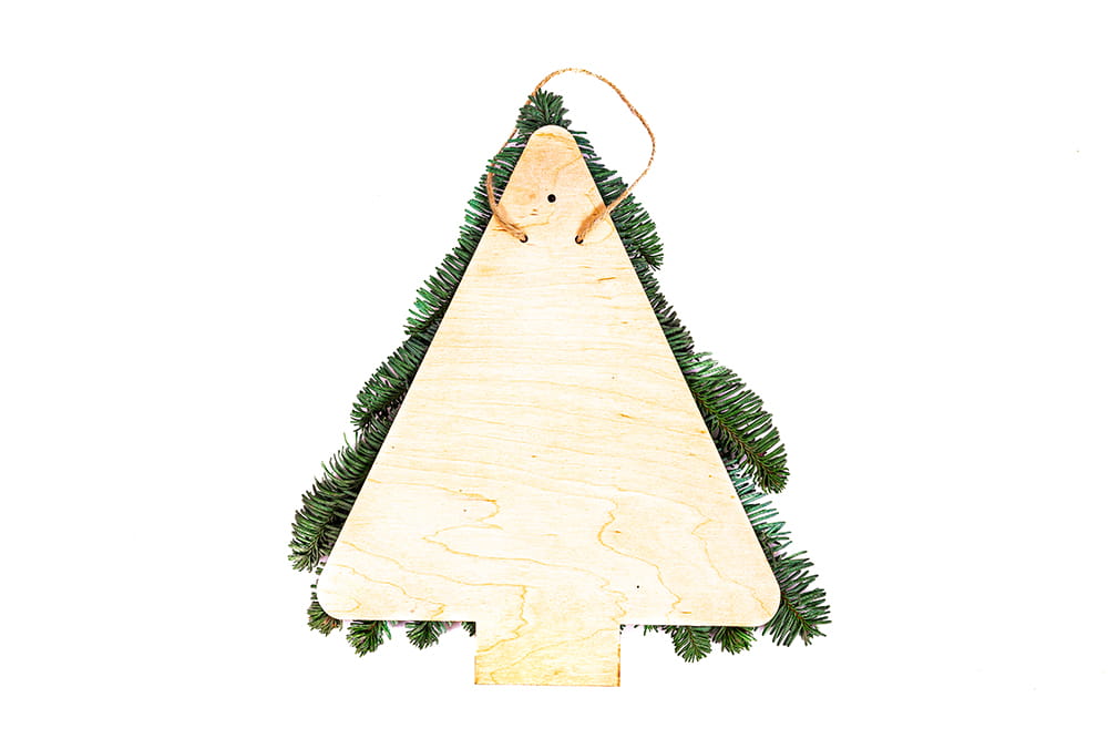 - materiał: żywe gałązki jodły, drewniany krążek, drewniana sklejka