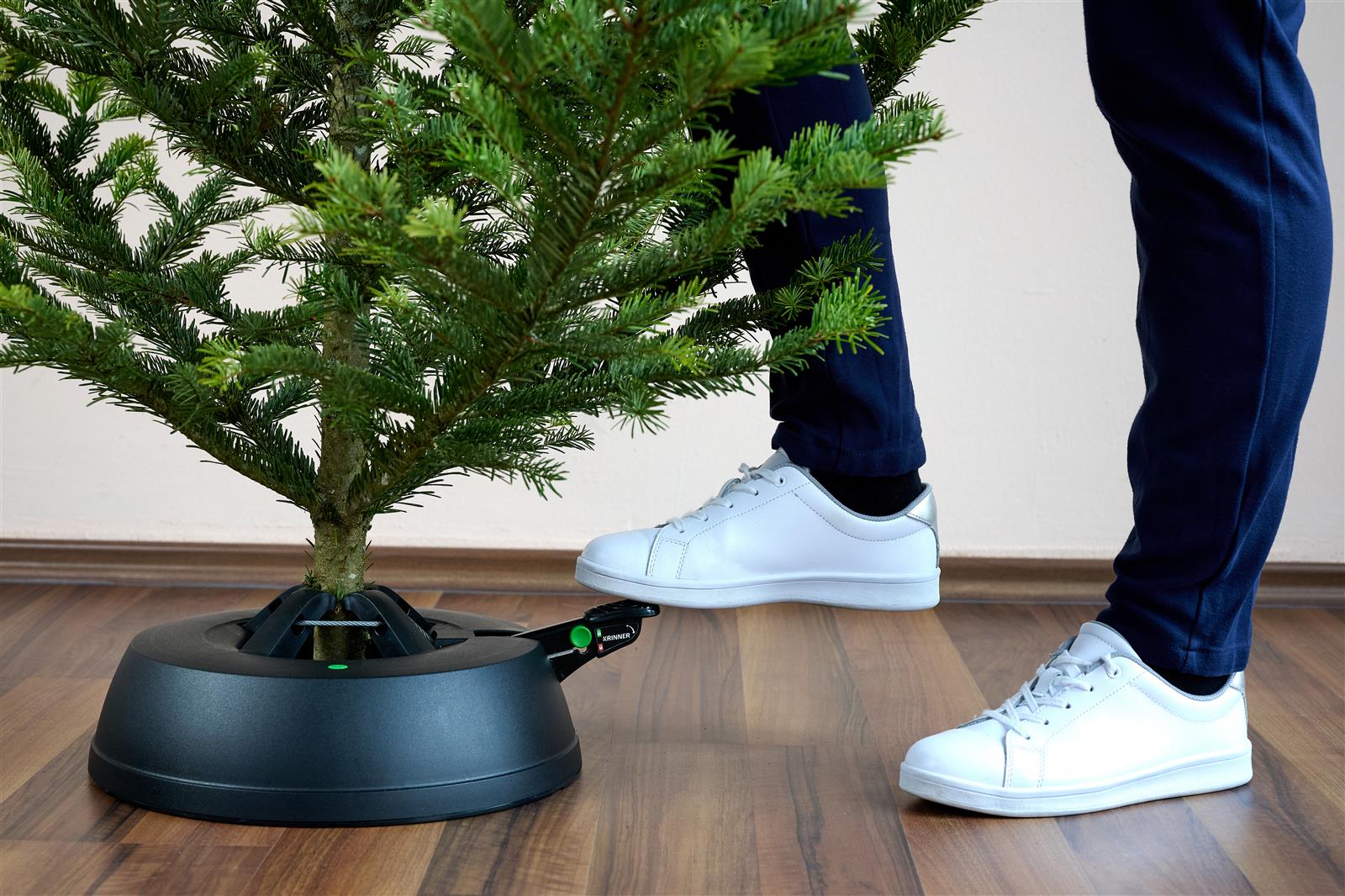 Stojaki KRINNER są wyposażone w oryginalną technologię pojedynczej liny, która zapewnia równomierny nacisk na pień, gwarantując stabilność drzewka, niezależnie od jego kształtu. Innowacyjny pedał bezpieczeństwa z większą powierzchnią styku ułatwia obsługę, a opatentowany system pasów bezpieczeństwa chroni przed przypadkowym przewróceniem choinki.