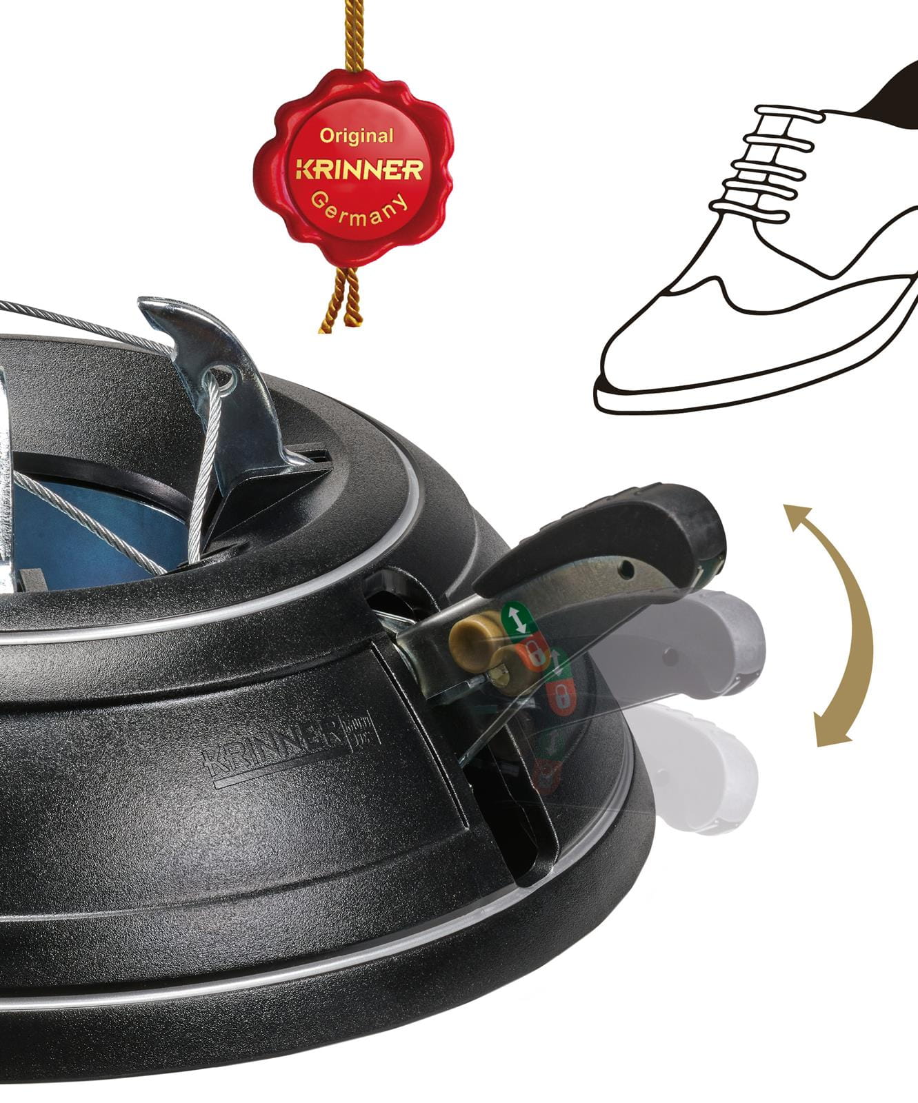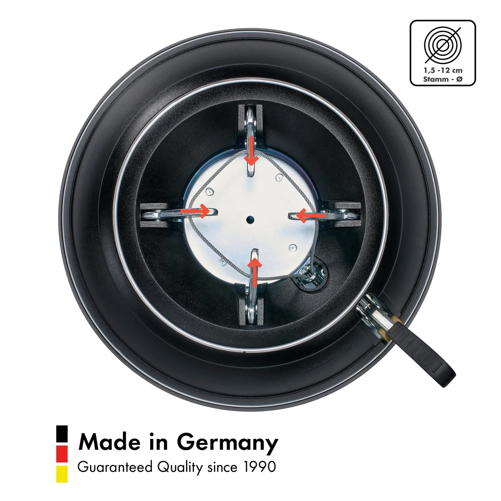 Stojaki KRINNER są wyposażone w oryginalną technologię pojedynczej liny, która zapewnia równomierny nacisk na pień, gwarantując stabilność drzewka, niezależnie od jego kształtu.